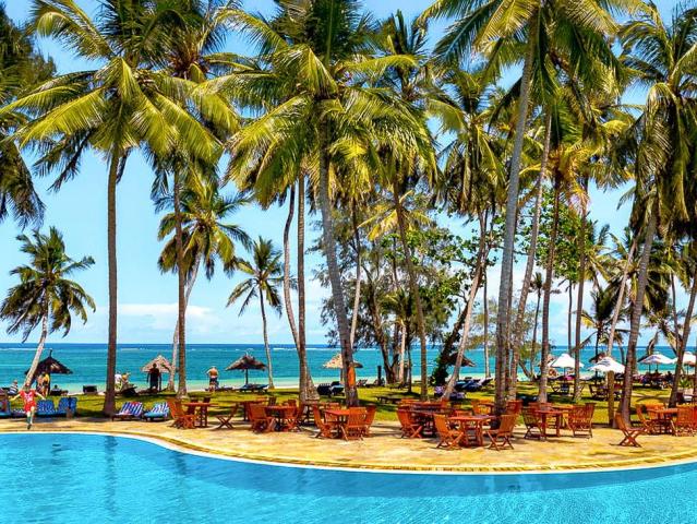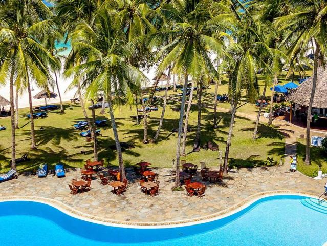 Přátelský, klidný hotel na severním pobřeží, zasazený do tropické zahrady na poměrně rozsáhlém pozemku. V blízkosti hotelu: bary, restaurace, obchody. Přibližně. 15 min. chůze do malého nákupního centra Nakumat. V blízkosti hotelu se nachází krokodýlí farma a Haller Park, což je zoologická zahrada afrických zvířat, vytvořená na rekultivovaném místě bývalého dolu, kde se dvakrát denně koná krmení žiraf. Komplex se skládá ze 2 budov, z nichž jedna je blíže k pláži a druhá hlouběji v zahradě. Přibližně. 10 km od centra Mombasy a přibližně 20 km od letiště. |