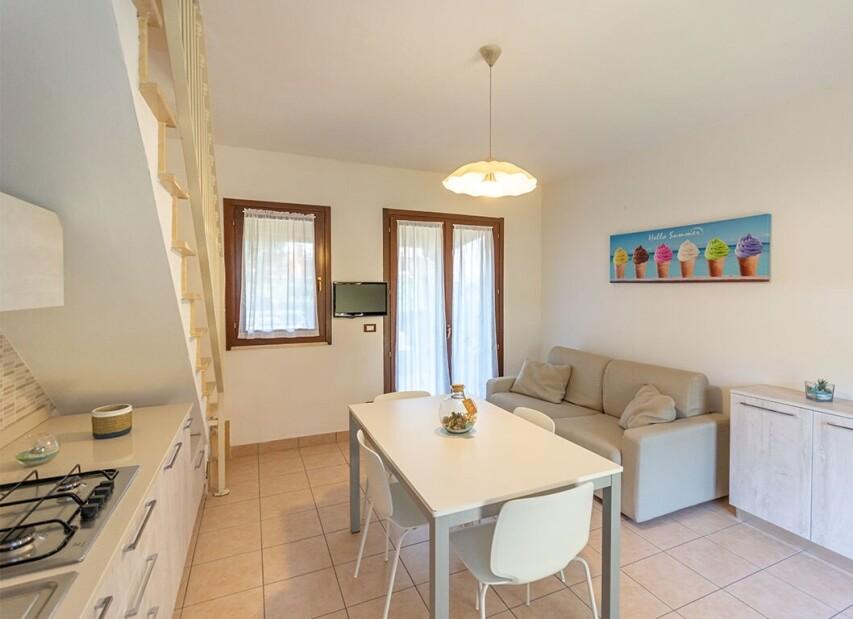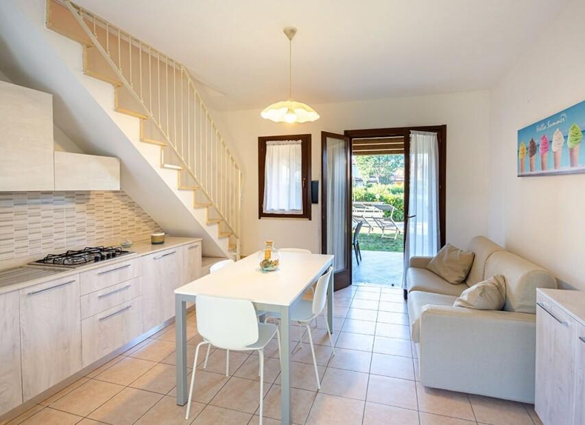Velmi pěkná a moderní residence CONCHIGLIA (Dodicesima Ovest) složená z řadových vilek se nachází v západní části ostrova ve fjordech přímo proti zálivu. Na společném pozemku je klientům k dispozici bazén (v provozu od cca poloviny června), Wi-Fi, volejbalové hřiště, tenisový kurt, dětské hřiště, prádelna (za poplatek) a barbecue. Pro každého hosta je v období do 19.06. a od 22.08.2026 k dispozici jízdní kolo. Všechny apartmány jsou mezonetové se soukromou zahrádkou, mají vlastní sociální zařízení, TV/SAT, Wi-Fi, klimatizaci, parkovací místo a venkovní posezení s krytou terasou. Na vyžádání je možno objednat mikrovlnnou troubu, topinkovač nebo varnou konvici. |