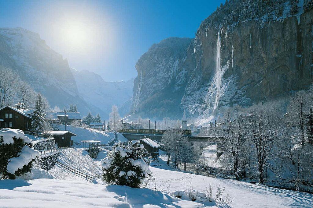 Den 6. Zima proměňuje Lauterbrunnenské údolí v tichou katedrálu přírody. Ledové závoje Staubbachfall se tiše snášejí z výšky jako zamrzlé nitky, hluboko ve skále Trümmelbachfälle pulzuje skrytá síla i v zimním spánku a Mürrenbachfall se tyčí v celé své mrazivé majestátnosti nad údolím. Tři vodopády, každý jiný, každý zastavený v čase. Když se k tomu přidá sněhový koberec a horské ticho, vzniká den, který působí jako scénografie z přírodního divadla. Hlavní body dne zahrnují: