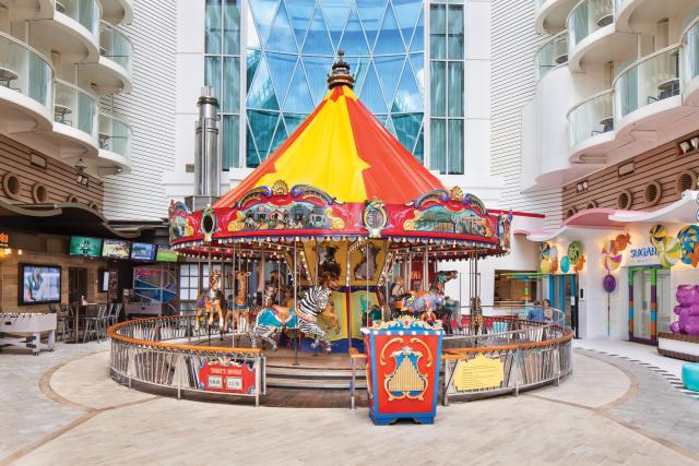 | Na lodi je k dispozici: Restaurace a bary:Až 25 možností stravování Menu o šesti chodech v sezonní 150 Central Park restauraci, kde je šéfkuchařem oceňovaný Michael Schwartz Izumi Hibachi & Sushi - exotická, Asií inspirovaná kuchyně včetně těch nejčerstvějších sushi a sashimi i široké nabídky dezertů Americký steakhouse Chops Grille Italská restaurace Giovanni's Table i Sorrento´s Pizza Mexická restaurace El Loco Fresh® Příležitostné občerstvení nabízí třeba Johnny Rockets Windjammer Café s nabídkou světových chutí Portside BBQ, kde se servírují oblíbená grilovaná jídla či domácí dezerty Playmaker Sports Bar & Arcade - sportovní bar s velkoplošnými obrazovkami vysílajícími živé sportovní přenosy a videoarkádami Sugar Beach s lahodnými cukrovinkami a zmrzlinou Lime and Coconut® venkovní bar u bazénu, který nabízí oblíbené koktejly, produkci DJ´s i živou hudbu Bionic Bar®, kde koktejly servírují robotická ramena Privátní salonek Diamond Lounge Latinský klub Boleros s tématickými koktejly a živou kapelou hrající salsu, cumbii, merengue či sambu Rising Tide Bar jezdící mezi Central Park a Royal Promenade Schooner Bar s živou hudbouZábava:Divadlo v broadwayském stylu s muzikálovým hitem Cats One Sky - nejnovější originální jevištní inscenace, vezme diváky na cestu objevování s hudbou a choreografií, která zkoumá naše vzájemné lidské spojení Aqua Theater, kde účinkující olympijské úrovně předvádějí kaskadérské kousky a leteckou akrobacii, přičemž se noří do nejhlubšího bazénu na výletní lodi Music Hall - taneční parket s nejlepšími cover kapelami Show na ledě jako například Frozen in Time Vodní show v AquaTheater s tanečníky, potápěči a akrobaty Casino Royale® ve stylu Las Vegas Spotlight Karaoke Duty-free zóna a butiky Live jazz klub, kabaret, karaoke bar, DJs Na palubě můžete navštěvovat jazykové kurzy, taneční hodiny, kurzy výroby šperků apod. Knihovna a karetní salonek Galerie uměníSport a adrenalin:Lezecká stěna pro začátečníky i pokročilé The Perfect Storm - vzrušující tobogány Ultimate Abyss - nejvyšší skluzavka na moři Laserová aréna Clash for the Crystal City Úniková místnost Mission Control: Apollo 18 - určeno osobám od 12 let Sportovní hřiště na basketbal, volejbal nebo pickleball Lanové centrum Zip Line rozprostírající se na devíti palubách Dva surfařské simulátory FlowRider® Kluziště Fitness centrum s lekcemi jógy, pilates či spinningu pod vedením vyškolených instruktorů Stolní tenis, minigolfRelaxace:4 bazény a 10 vířivek Solárium je kouskem ráje s uklidňujícími vířivkami, teplým sluncem a osvěžující vodní mlhou Wellness areál Vitality Spa s relaxačními a kosmetickými procedurami, masážemi, akupunkturou, kadeřnickým salónem, manikúrou a dalšími proceduramiPro děti:Adventure Ocean® Youth Program pro všechny věkové kategorie Aktivity pro rodiny s dětmi, hry, soutěže, přednášky Nový exkluzivní salonek pro teenagery od 13 do 17 let s hudbou, filmy, hrami i venkovním posezením na terase Skupina Adventure Ocean Junior pro děti od 3 do 5 let, kde se mohou naplno věnovat umění, řemeslům, vědeckým experimentům a dalším vzdělávacím aktivitám Adventure Ocean Babies program pro malé děti ve věku od 6 do 36 měsíců, které si mohou užít rozmanité druhy zábavných aktivit Aquapark Splashaway Bay s barevnými tobogány, vodními děly, fontánami, bazény a vířivkami pro malé i velké Adventure Ocean Theatre první loutkový muzikál, dětská inscenace kombinuje 3D a světelné efekty Kolotoče a atrakce na promenádě Boardwalk Videoherna |