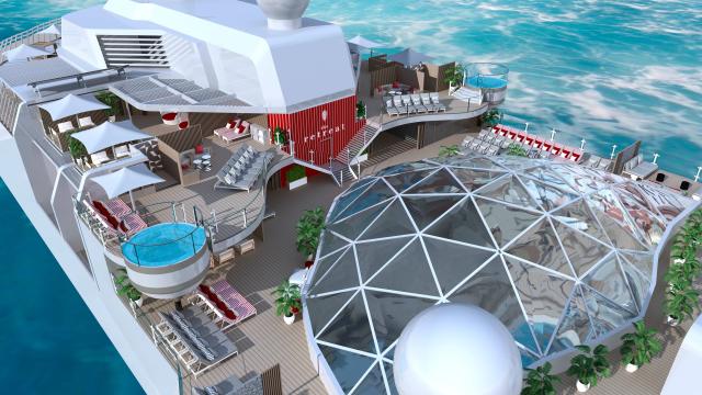 Loď má oproti svým předchůdcům ještě větší délku, což dalo vzniknout unikátním venkovním prvkům jako je dvoupodlažní Sunset Bar nebo střešní zahrada Rooftop Garden, která vás přiblíží k vodní hladině víc, než bývalo doposud zvykem. Středem střešní terasy je krásný 23metrový bazén. Těšit se samozřejmě můžete i na řadu exkluzivních gastronomických zážitků, například na novou restauraci světově uznávaného francouzského šéfkuchaře Daniela Bouluda. Pro náročnější klientelu bude k dispozici luxusní salónek Retreat Lounge, kde si můžete vychutnávat drinky a ničím nerušené výhledy na obzor. Kdo si chce užít opravdu pořádnou porci luxusu, nechť si rezervuje si mezonetové kajuty s vlastním ponorným bazénem.