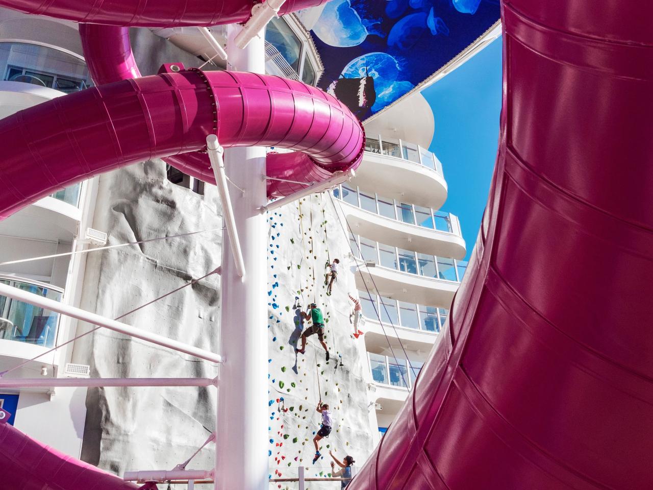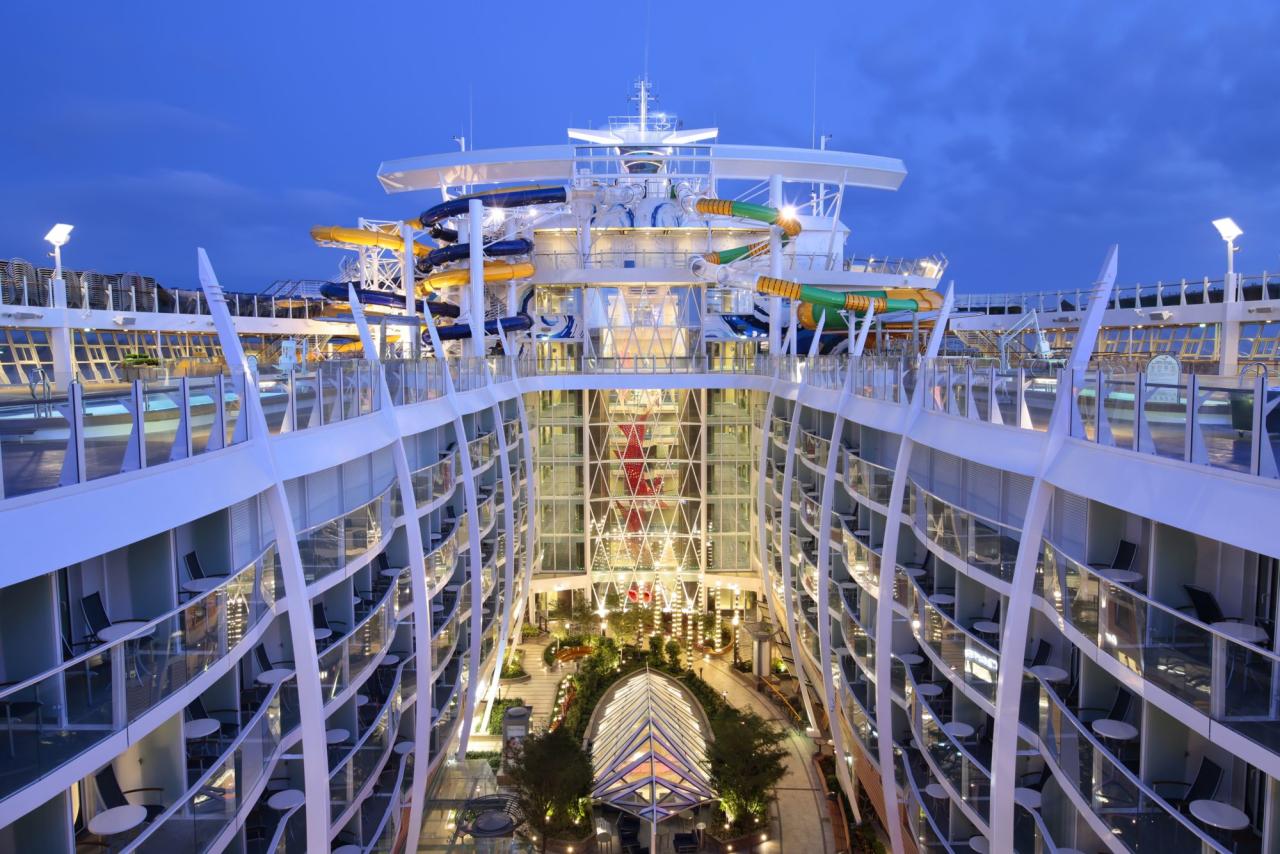 | Na lodi je k dispozici: Restaurace a bary:Hooked Seafood - restaurace nabízející skutečnou chuť mořských plodů Mexická restaurace El Loco Fresh Izumi Hibachi & Sushi - exotická, Asií inspirovaná kuchyně včetně těch nejčerstvějších sushi a sashimi i široké nabídky dezertů Italská restaurace Jamie´s inspirovaná toskánskou kuchyní, menu vytvořené jedním z nejslavnějších britských šéfkuchařů Jamie Oliverem Wonderland Imaginative Cuisine je tu od posouvání kulinářských hranic, kdy pokrmy jsou navrženy tak, aby pobavily chuťové pohárky i oslnily po vizuální stránce Windjammer je oblíbená restaurace, kde se podávají lahodné světové chutě, v nabídce je mnoho i bezlepkových a vegetariánských pokrmů Pizzerie Sorrento´s Playmakers Sports Bar & Arcade - sportovní bar s velkoplošnými obrazovkami Café Promenade, kde si můžete vychutnat čerstvou kávu a lehké občerstvení Bionic Bar, kde oblíbené drinky podávají dvě robotická ramena Boleros s živou latinskoamerickou hudbou Schooner Bar s živou hudbouZábava:Uvítací recepce s kapitánem lodi Divadlo s vítězným představení z Broadwaye - Hairspray AquaTheatre - vodní divadlo plné kaskadérských kousků a adrenalinu např. při představení Hiro Jedinečná show Flight o minulosti i budoucnosti létání Casino Royal ve stylu Las Vegas, karetní salonek Studio B - jedinečná laser herna s Bitvou o planetu ZSM Bruslařská aréna s dech beroucím krasobruslařským představením 1977 Karaoke Bar Úniková hra Jazzová představení (Jazz on Four) Taneční party (Dazzles), diskotéky, oslavy, tematické party a mnoho dalšího Na palubě lze navštěvovat jazykové kurzy, taneční hodiny, kurzy výroby šperků apod. Knihovna Obchody - kosmetika, parfémy, šperky a hodinky a dalšíSport a adrenalin:Perfect Storm - trio hrozivých skluzavek - Typhoon, Cyclone a Supercell, které vezmou hosty na divokou vodní jízdu Ultimate Abbys - 10ti patrová skluzavka, nejvyšší na moři FlowRider - simulátor surfování pro úplné začátečníky i profesionální pokořitele vln Rock Wall - 12 metrů vysoká horolezecká stěna Zip line Minigolf, stolní tenis Fitness centrum - lekce jógy a pilates, kardio a posilovací stroje Kurty a sportovní hřiště Dráha na joggingRelaxace:Bazény a vířivky Solárium - kousek ráje s uklidňujícími vířivkami, teplým sluncem a osvěžující vodní mlhou Lázně Vitality Spa - masáže, procedury, salon krásyPro děti:Adventure Ocean - dětský klub s kreativními dílnami a kurzy, vědeckou laboratoří a dětským divadlem s filmy a loutkovými představeními Teen Zone - zóna pro teenagery od 12 do 14 a od 15 do 17 let s filmovými představeními, horolezeckými aktivitami nebo diskotékami Voyagers - klub pro děti od 9 do 11 let s vlastní vědeckou laboratoří Explorers - klub pro děti od 6 do 8 let s uměleckými nebo archeologickými dobrodružstvími Aquanauts - klub pro děti od 3 do 6 let s Pirátskou nebo Pyžamovou party Royal Babies and Tots - klub pro děti od 6 do 36 měsíců Splashaway Bay - dětský aquapark se skluzavkami, vodními děly, vodopády a dalšími atrakcemi Kolotoč Videoherna |