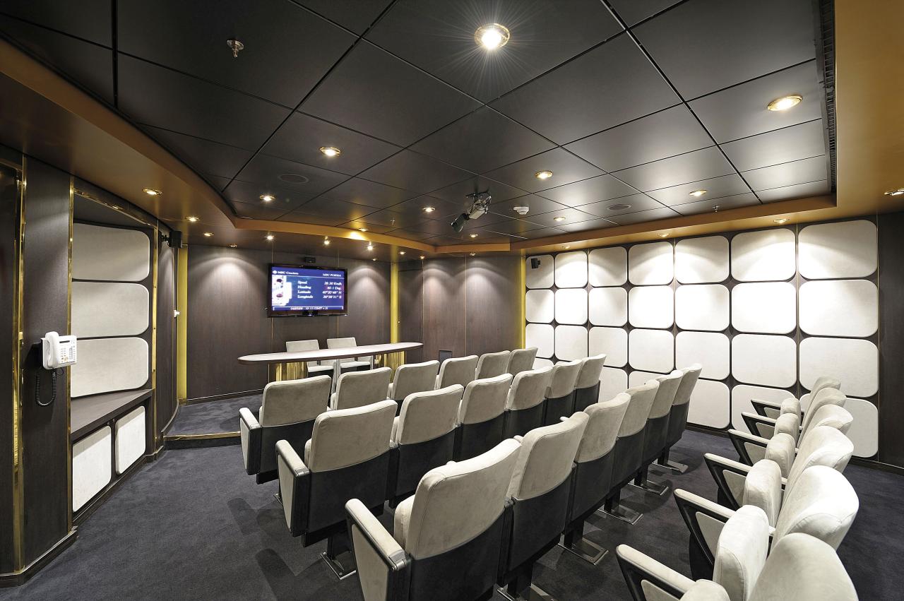 | Na lodi je k dispozici:Restaurace: Il Palladio Ristorante, Le Fontante Ristorante, Kaito Sushi Bar, Villa Pompeiana a L´Obelisco buffet restaurants, Bary a salonky: např. Il Grappolo d´Oro, Pigalle Lounge, Giada Bar, The Hitchcock Lounge Cigar Room, Mojito Bar, The Zebra Bar, Le Rendez Vous Bar, venkovní Piranha Bar Divadlo Carlo Felice, kasíno, S32 Disco Aerobik, pilates, spinning a vodní spinning, kondiční programy na míru, kvalifikovaný osobní trenér MSC Aurea Spa: až 20 typů masáží včetně thajské nebo masáže lávovými kameny, sauny a turecké lázně, salón krásy a kadeřnictví, manikúra, pedikúra Dráha na jogging, hřiště na basketbal, fotbal, volejbal, tenisové kurty Squash, ping-pong, stolní fotbálek Minigolf, mini bowling Dinosauří park pro děti 3 bazény, 7 vířívek Knihovna, fotogalerie, konferenční místnost Butiky Ordinace lodního lékaře |