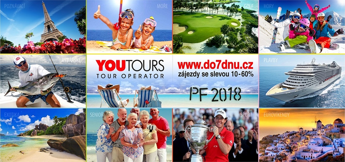 Cestovní kancelář YOUTOURS, s.r.o. (www.youtours.cz) Vám díky špičkové IT technologii nabízí na jednom místě kromě svých vlastních zájezdů taktéž 200.000 ověřených ubytovacích kapacit a více jak 8.000.000 zahraničních i tuzemských zájezdů se zaměřením na dovolenou u moře, exotiku, pobytové a poznávací zájezdy, plavby, eurovíkendy, lyžařské, cyklo, rybářské a golfové zájezdy, welness a další od více jak 300 českých, slovenských a polských cestovních kanceláří (tour operátorů) pojištěných pro případ úpadku a cca 20 000 000 zájezdů od německých a rakouských cestovních kanceláří. Vyberte si ověřené hotely, letenky, transfery, zapůjčení auta a jiné služby.